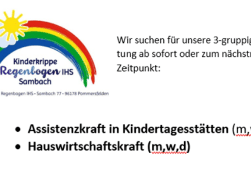 Sie sind hier: Startseite » Die Kinderkrippe Regenbogen IHS Sambach sucht dringend …