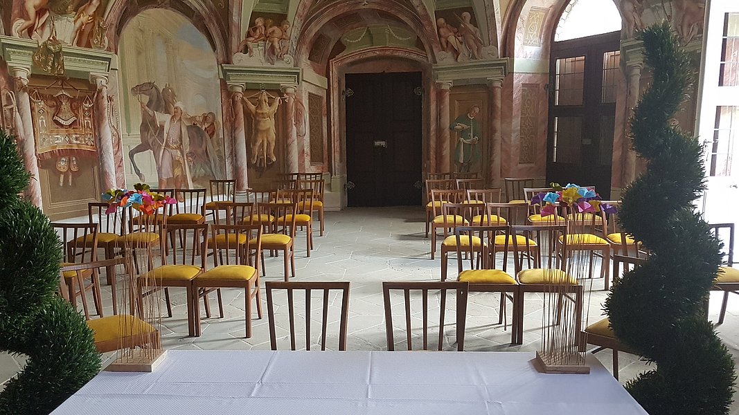 Als neuen Trauungsort bietet die „Sattelkammer” im Marstall von Schloss Weissenstein einen stilvollen und festlichen Rahmen für Ihre Hochzeit. Die Sattelkammer verfügt über maximal 30 Sitzplätze. Weitere Hochzeitsgäste können jedoch im Ehrenhof stehen. Die Miete für den Raum und zusätzliche Leistungen wie ein Sektempfang sind mit der Schlossverwaltung direkt abzurechnen.
